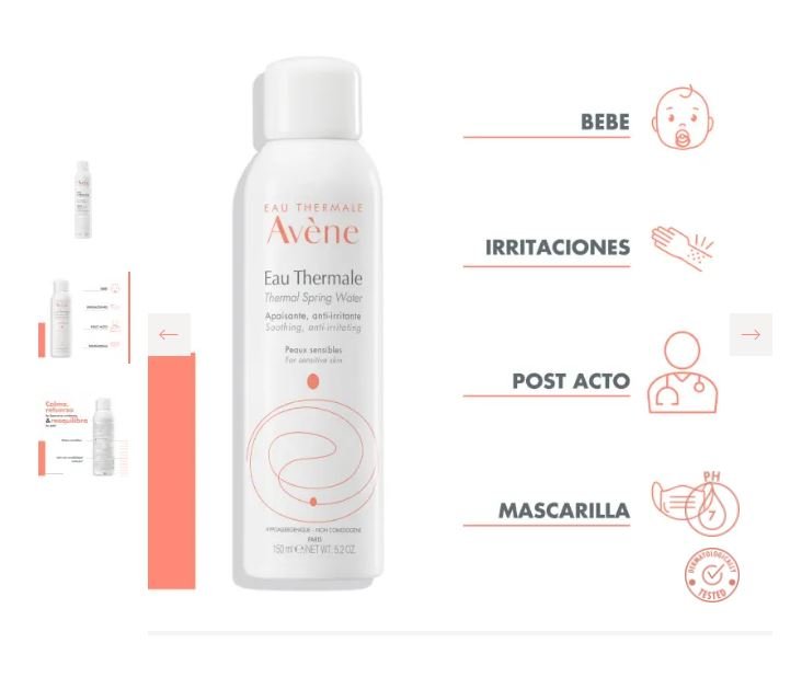 El Agua termal de Avène Spray alivia, refuerza y reequilibra las pieles sensibles o irritadas que presentan signos de malestar, enrojecimiento, picor y tirantez.