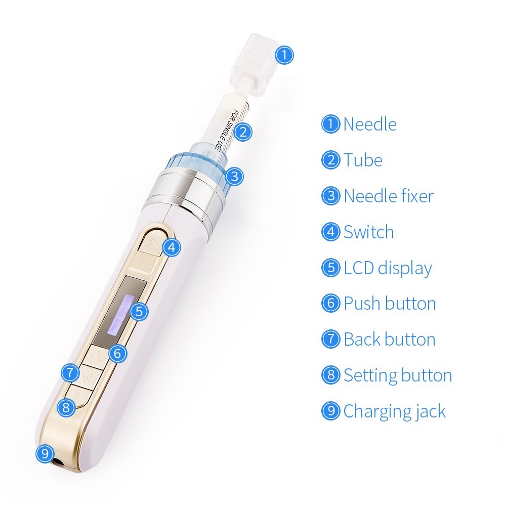 2. Con el fin de mantener la piel hidratada, las mujeres siempre seleccionan productos variados para el cuidado de la piel. En realidad, los productos para el cuidado de la piel solo hidratan la humedad en la cutina. De modo que al manchar esos productos no puedan proporcionar humedad profunda a la piel. La pistola de mesoterapia inyectora resolverá todos los problemas debido a la falta de humedad, como la piel ahumada, el punto de color, las arrugas y proporcionará humedad para la dermis.