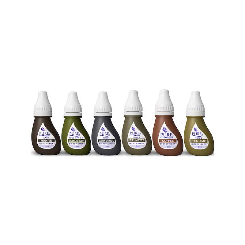 El pack de pigmentos homologados Pure para micropigmentación de areolas, camuflaje de estriasofrece los 6 colores más empleados para realizar tratamientos de micropigmentación oncológica. Las tintas Pure está fabircadas en Estados Unidos, y cuentan con el pertinente registro sanitario en España por AEMPS. Colores estables. Tintas en formato 3 mililitros. A continuación, podrá encontrar una breve guía sobre el uso de cada pigmento.