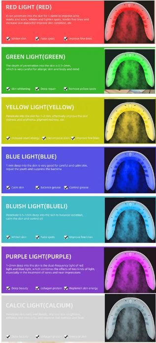 - 💗【7 luces de color】— Tecnología de terapia de fotones, combina una luz led de 7 colores que tiene una longitud de onda diferente para el tratamiento de la luz del problema de la piel, lo que ayuda a recuperar una apariencia joven.